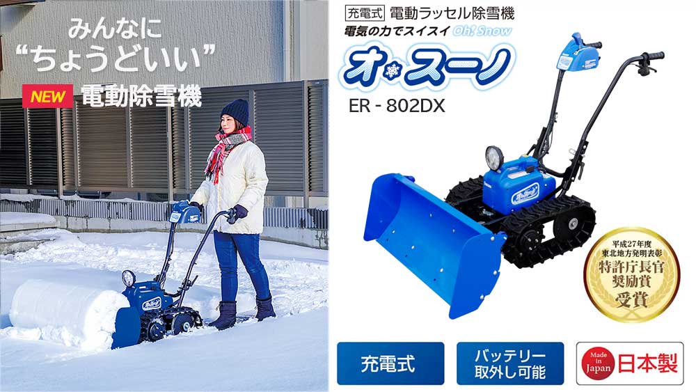 電動除雪機 オ・スーノER-802DXは安心の日本製。ER-801DXの後継機です。