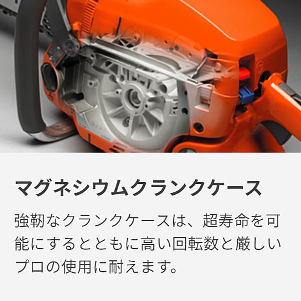 大木の伐採業務、製材用、樹齢数百年の樹木の伐採など特別な用途に使用されることが多いチェンソーです。