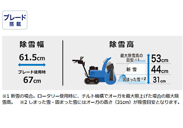 除雪幅 (mm)/ブレード使用時(mm):615/670