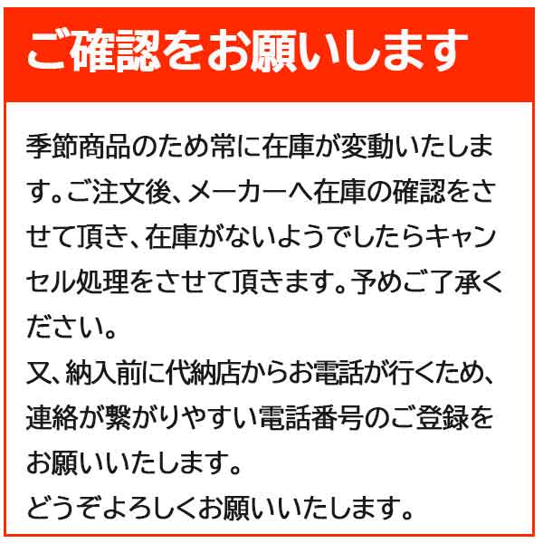 ご注文後、メーカーへ在庫の確認をさせて頂き、在庫がないようでしたらキャンセル処理をさせて頂きます。