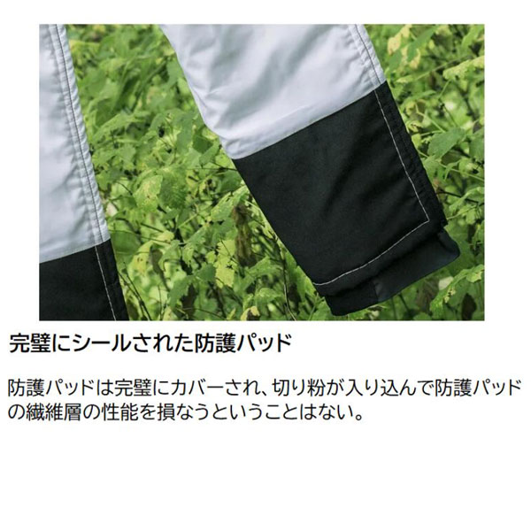 ズボンの内側にある保護パッドの下部は、防護パッドを摩耗から保護し、高い耐久性を確保するために補強されています。