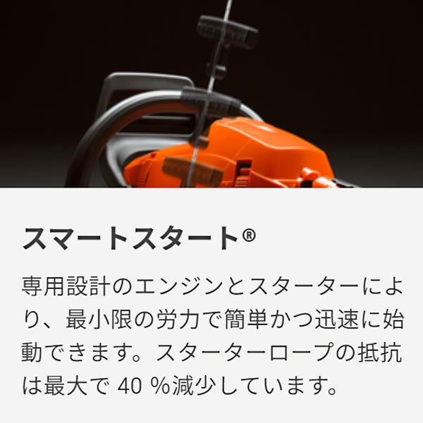鋸断や伐倒が容易にできる Smart Start(R)機能搭載のオールラウンドチェンソ―。使いやすく、始動も簡単なハスクバーナ製です。