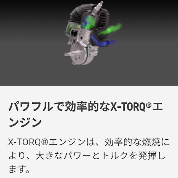 X-Torq(R) エンジンを搭載し、優れた燃焼効率により強力な出力とトルクを発揮します。