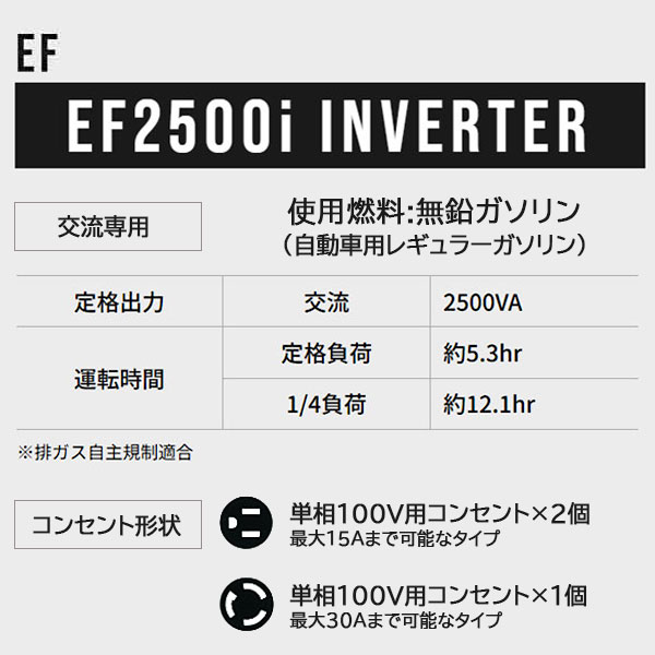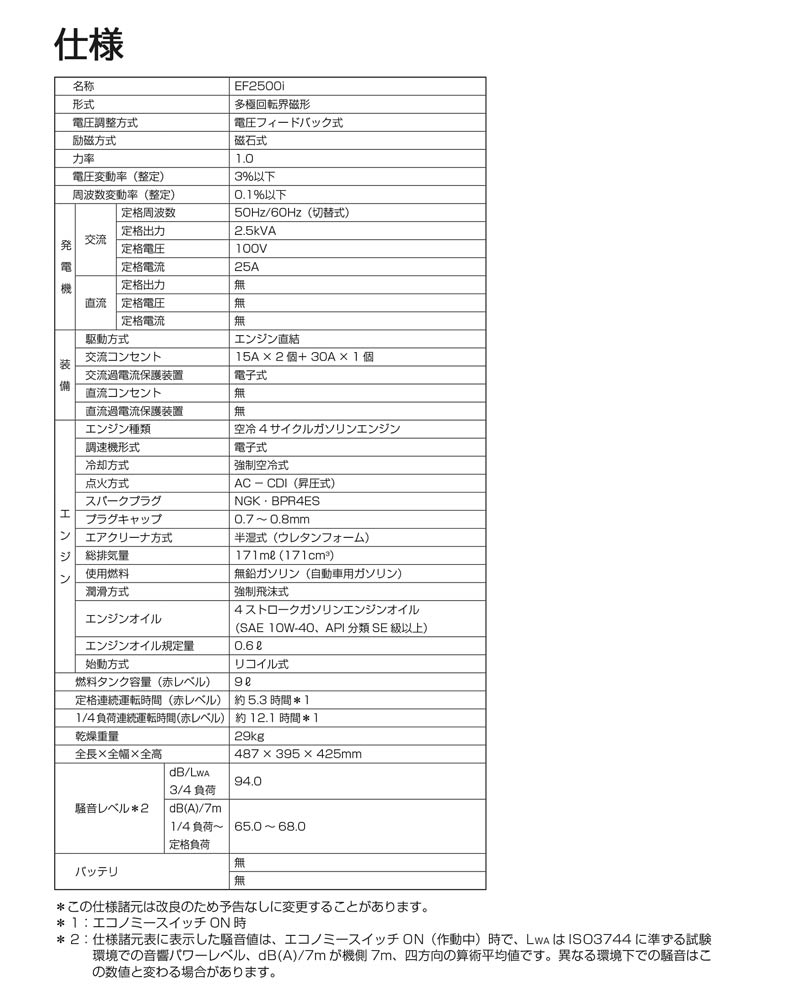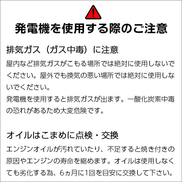2.6kva(2600W)以上の出力を持つ発電機が必要です。