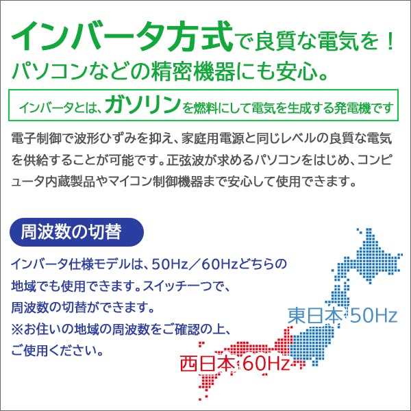 インバータとは、ガソリンを燃料にして電気を生成する発電機です。