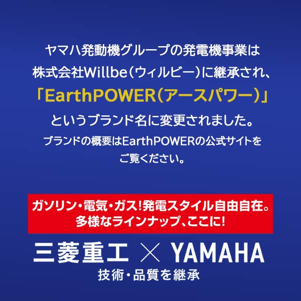 ヤマハ発動機グループの発電機事業は株式会社Willbeに継承され、「EarthPOWER」というブランド名に変更されました。