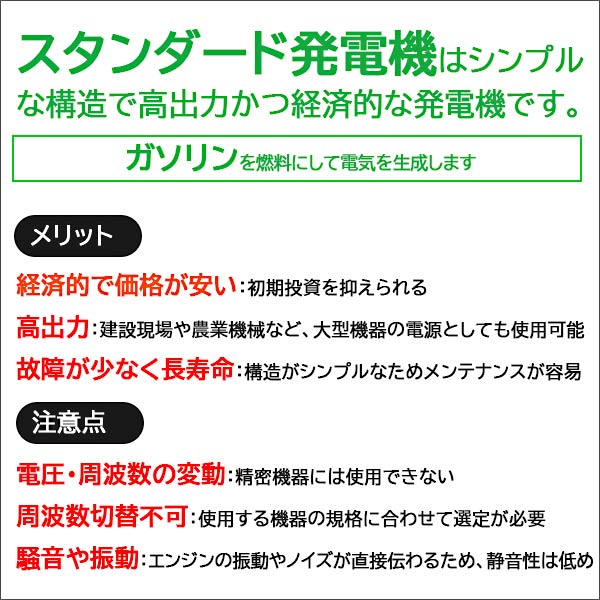 インバータとは、ガソリンを燃料にして電気を生成する発電機です。