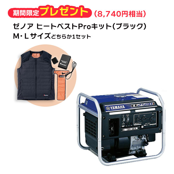 ヤマハ インバータ発電機 EF2500i エンジン発電機 ご購入キャンペーン ゼノアヒートベストPro キット M・Lサイズ(ブラック)をいずれか1セットプレゼント